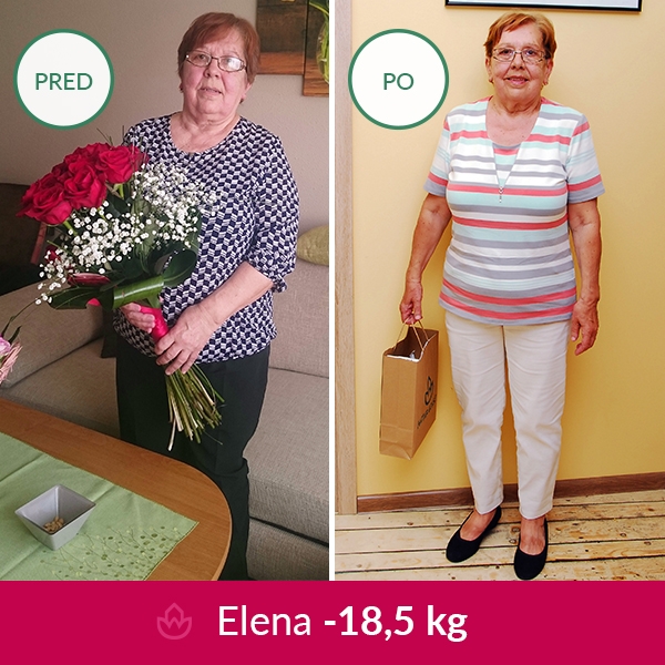 Pani Elenka si pre seba ku krásnemu životnému jubileu darovala nezvyčajný darček a len pár dní po oslave sa rozhodla navštíviť výživovú poradňu NATURHOUSE v Piešťanoch. Presne o tri mesiace neskôr odchádza o 18,5 kg ľahšia.