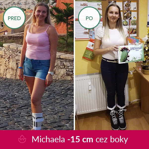O tom sa sama presvedčila študentka Michaela Kubincová, keď začala dochádzať na pravidelné konzultácie do výživové poradne NATURHOUSE v Banskej Bystrici. Po 5 mesiacoch je ľahšia o 8,5 kg, štíhlejšia cez boky o 15 cm a bez bolestivých opuchov nôh.