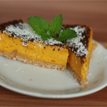 ingrediencie na cesto rozmixujte a zmiešajte v lepivú hmotu. Tú potom natlačte na spodok tortovej formy vymastenej kokosovým olejom a dajte na 10 minút upiecť do predhriatej rúry na 180 °C. Medzitým zmiešajte ingrediencie na náplň a nakrájajte jablká na plátky. Upečené cesto potrite ďalšími 3 lyžicami šípkového pyré, poukladajte naň 1/2 plátkov jabĺk, polejte tvarohovou plnkou a poukladajte druhou polovicou jabĺk. Pečte na 160 ºC asi hodinu až hodinu a pol, podľa rúry. Nechajte vychladnúť..jpg)